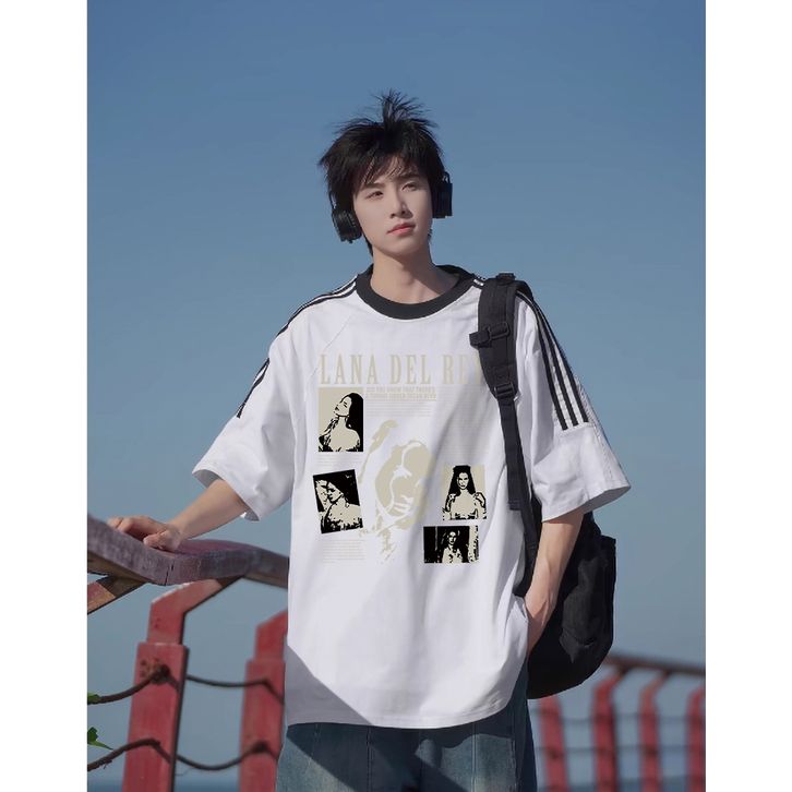 MURAH Disneay Baju Kaos Oversize Pria Keren Kece | Lana Del Rey | Boxy Longgar Hitam Putih Tiga Garis Kaos Pria