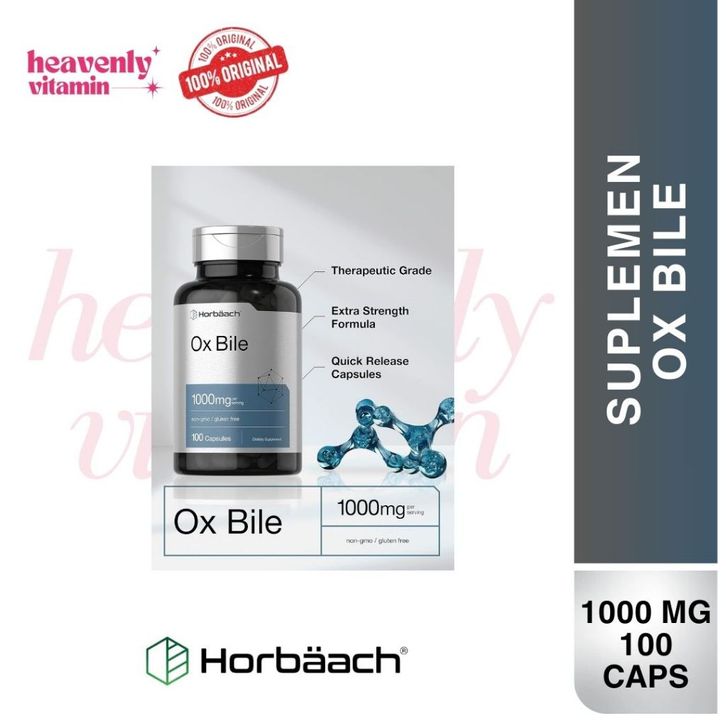 GRATIS ONGKIR✅ Horbaach Ox Bile 1000 mg 100 Capsules - Digestive Enzymes Supplement - Non-GMO & Gluten Free