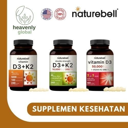 GRATIS ONGKIR✅ Naturebell Vitamin D3+K2 with Coconut Oil 180 & 240 Softgels, Non-GMO, Gluten Free