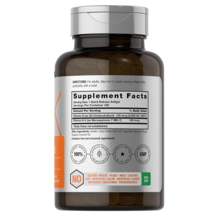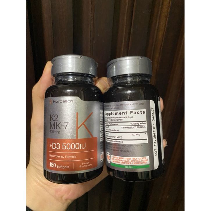 GRATIS ONGKIR✅ Horbaach Vitamin D3 K2 isi 180 SOFTGEL 5000iu + 100mcg USA