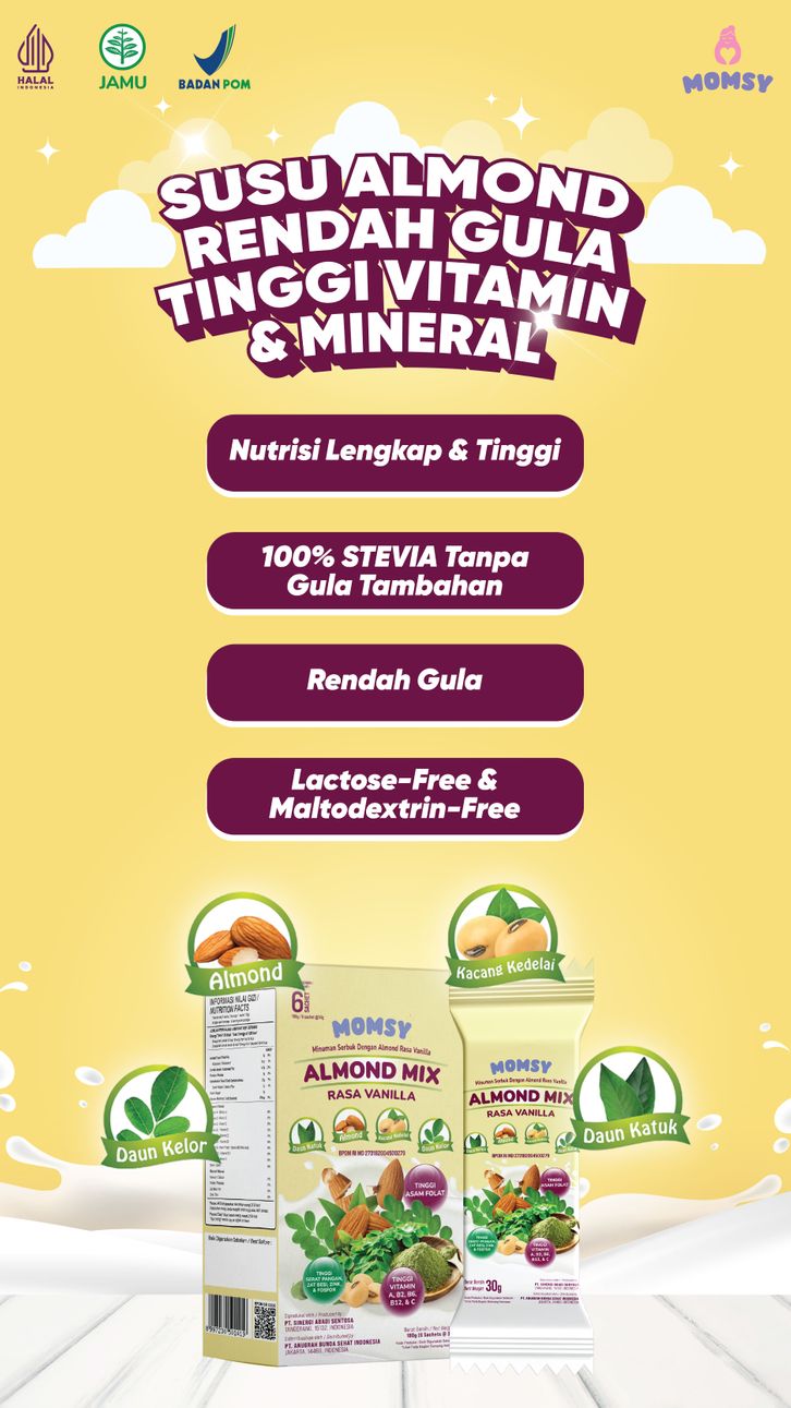 GRATIS ONGKIR✅ Minuman Almond Rasa Vanila 20 Sachet BPOM HALAL Natural Almond Kedelai Katuk Kelor