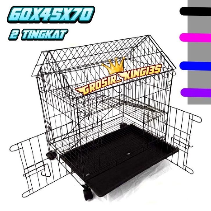 Kandang Kucing Tingkat 2 Atap Size L 60x45x70 cm + Roda Muat 3-4 Anak Ekor Kucing Promo