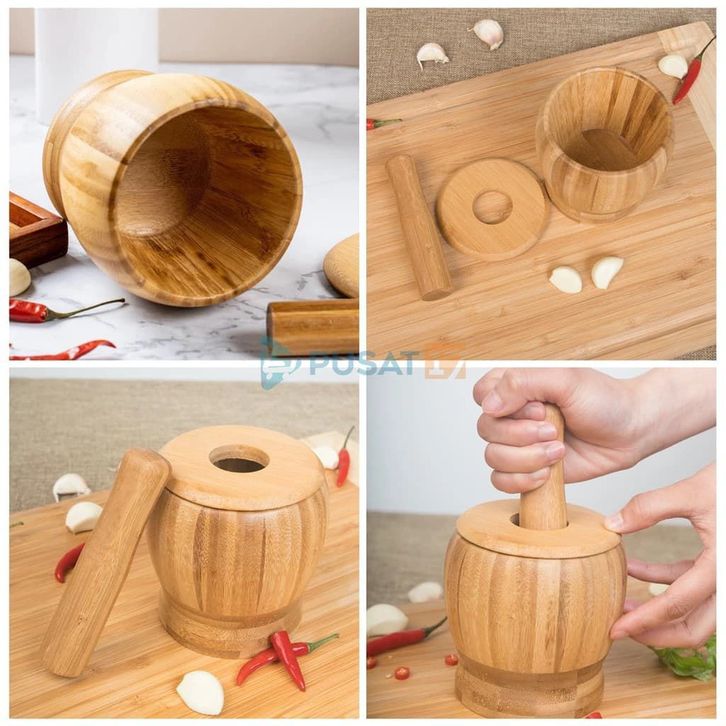 TERLAKU LUMPANG SET KAYU BAMBU 3IN1 / PENUMBUK BUMBU DAPUR ALAT GIRING BUMBU OBAT MERICA / BAMBOO MASHER ocilr