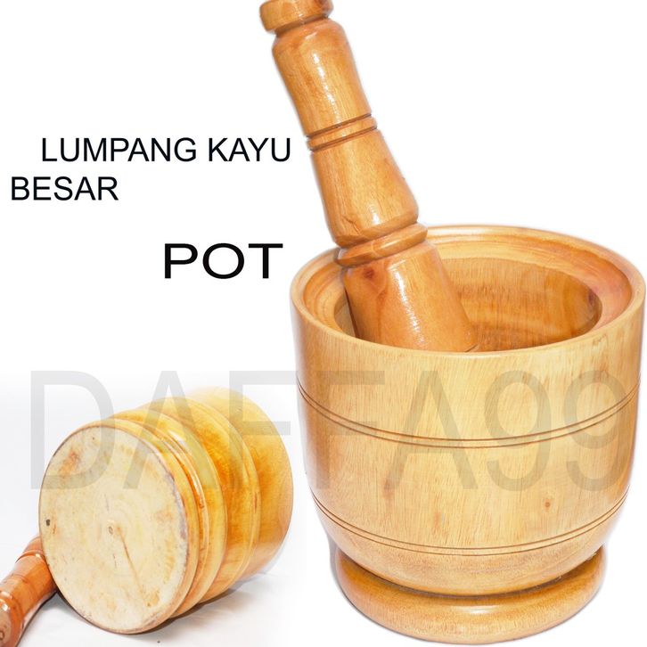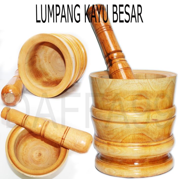TERMURAH Set Lumpang Kayu Mahoni Ukuran Besar + Tumbukan Alu, Motif Coklat dan Natural inibs