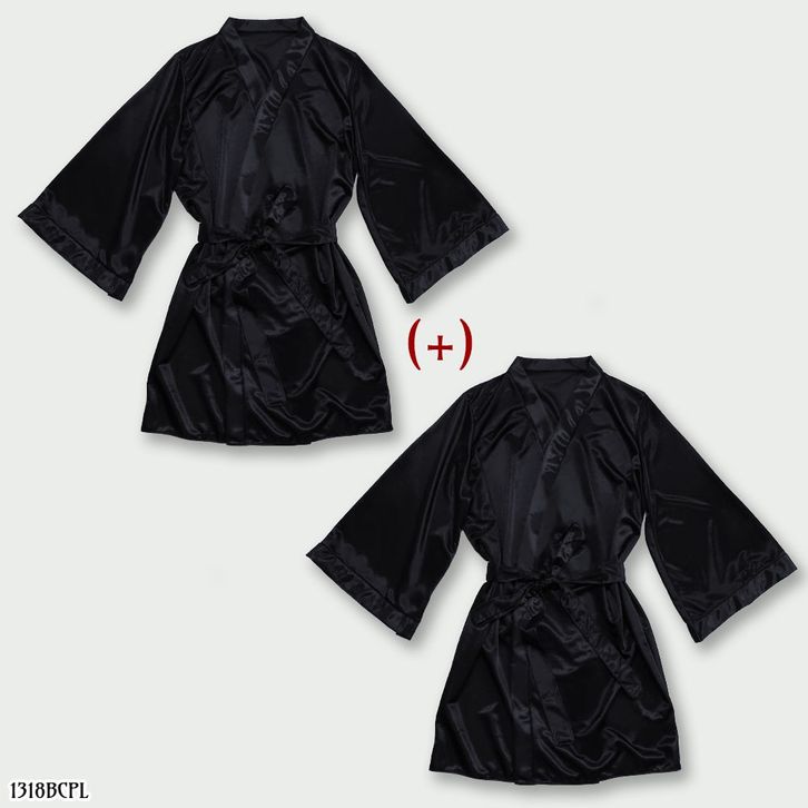 GROSIR FOLVA kimono baju tidur couple satin 1318BCPL hitam all size ibarf