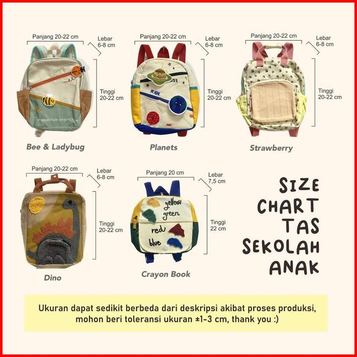 BEE & LADYBUG, DINO BAG, STRAWBERRY BAG, PLANETS BAG, CRAYONBOOK SMALLSIZE, FLOWER BAG