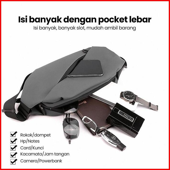 Freeknight Tas Selempang Pria Terbaru 2023 Sling Bag Cowok Waterproof Dua Muka Casual Waistbag Pria Polos Tas Pinggang S