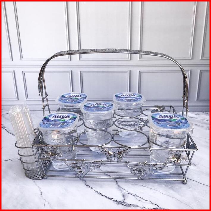 Keranjang Tempat Rak Air Mineral -12 Aqua Gelas Stainless Steel