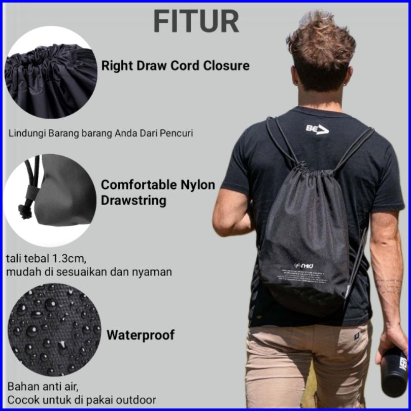 Rhid - Tas Serut Pria String Bag Polos Selempang Olahraga Bahan Taslan Tas Pria Ransel Polos Tas Wanita Polos Waterproof