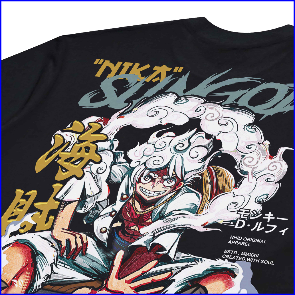Rhid - T Shirt Kaos Monkey D Luffy Gear 5 Sun God Nika
