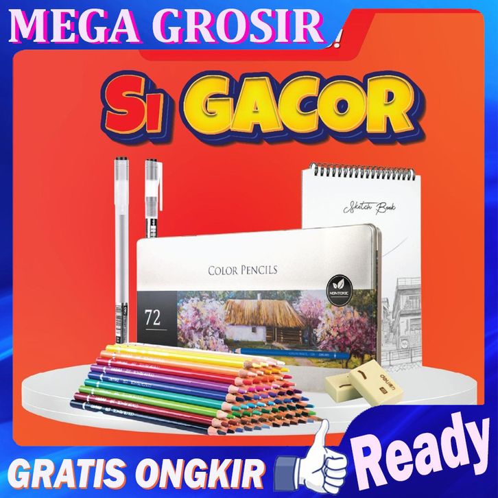 PENSIL WARNA LENGKAP DELI COMBO GACOR OIL PENSIL 24/36/48/72 + SKECTHBOOK FREE GEL PEN + PENGHAPUS KERTAS