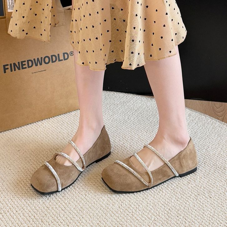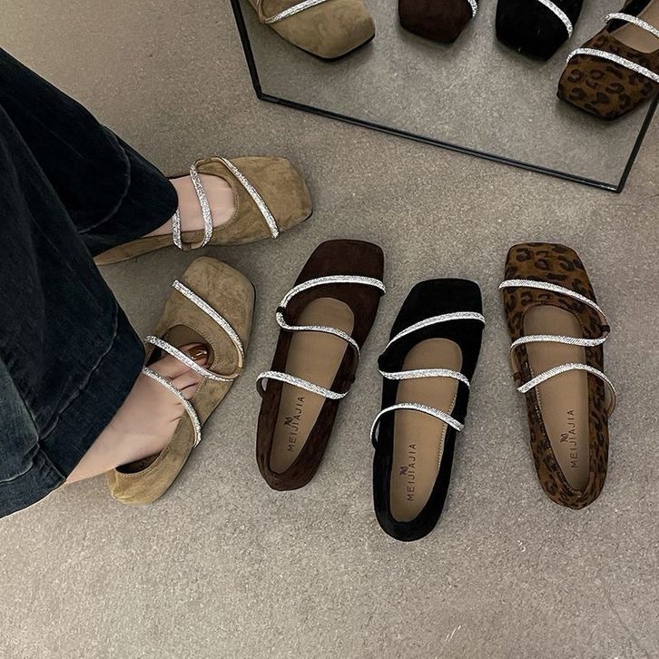 [COZY] Gina Sepatu Balet Ujung Persegi Tali Manik Elegan Sol Lembut Wanita Fashion Korea