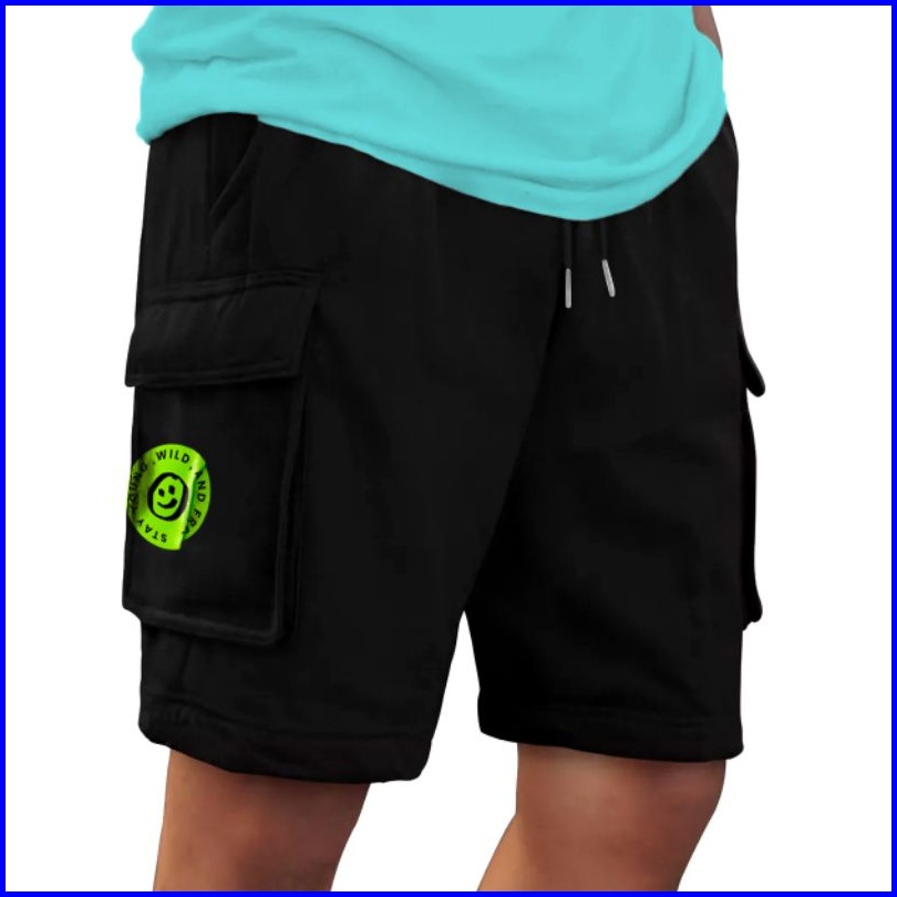 Rhid - Celana Pendek Pria Cargo Boardshort Shot Pants Bahan Fleece- Black