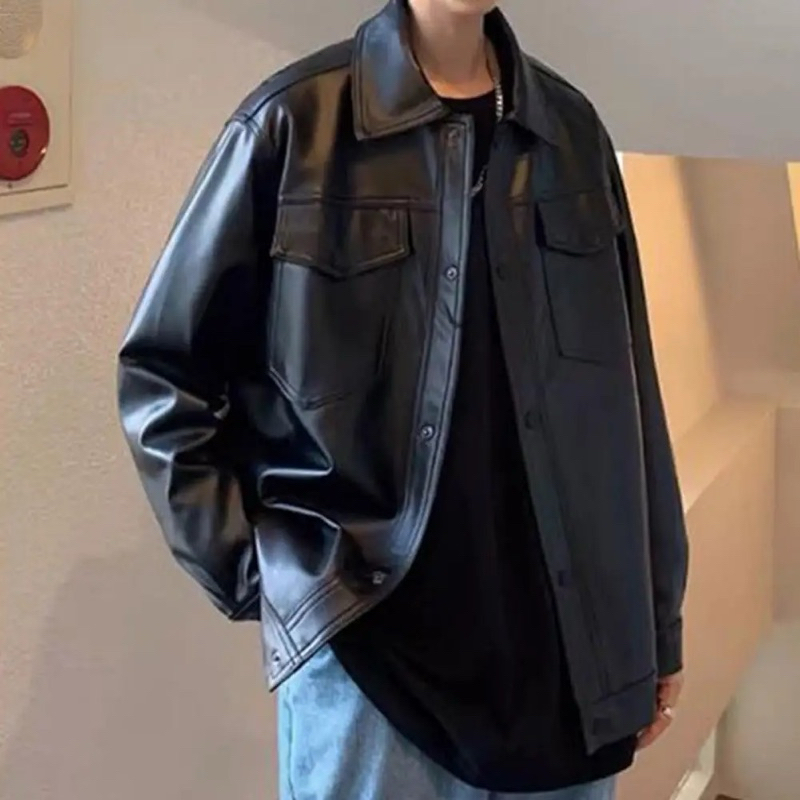 Riseleather.Id - Jaket Kulit Pu Pria Casual Semi Oversize