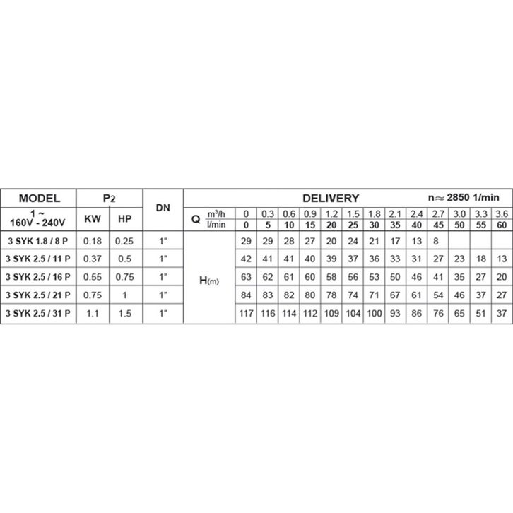 YORK 3SYK2.5-11P Pompa Submersible 1/2 HP 3 Inch tipe 3 SYK 0.5 HP 3-