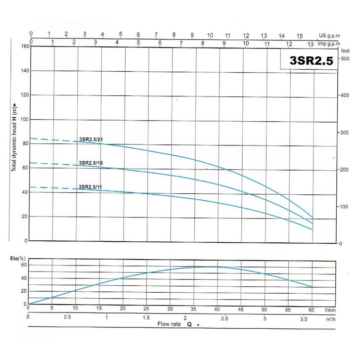 Padova 3SR2.5m/16 + Kabel 50 Meter Pompa Submersible 3/4 HP 3 Inch