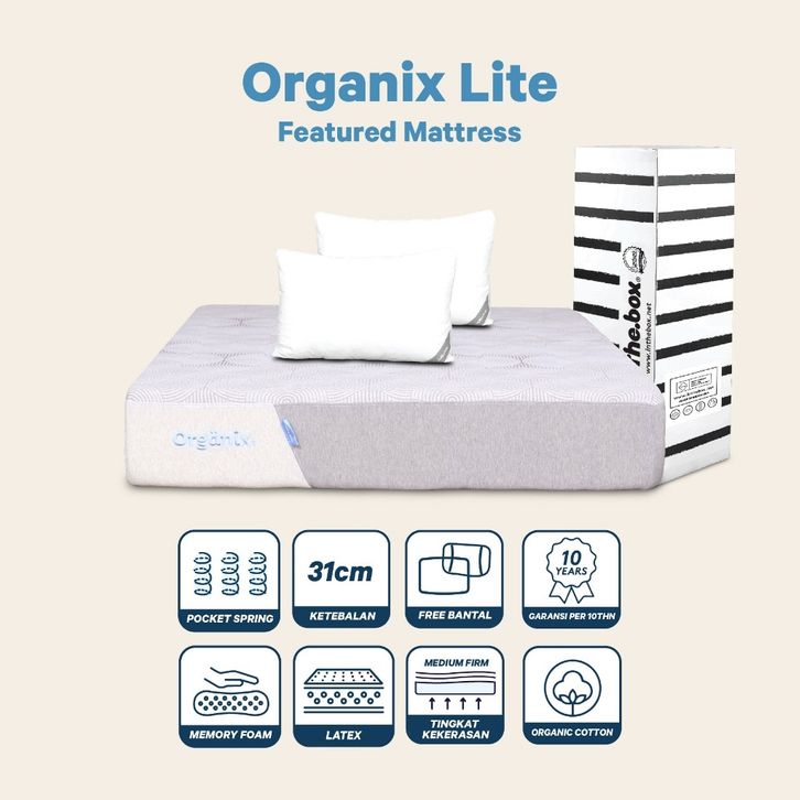 Kasur Latex Spring Bed IN THE BOX ORGANIX LITE 120 200 160 200 180 200 Free Bantal Garansi 10 Tahun