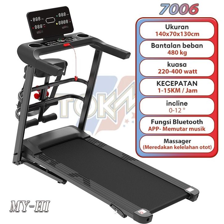 【TOK MK】MY-HI Treadmill electric 7006 low watt Layar LCD Bluetooth Musik Treadmill pintar