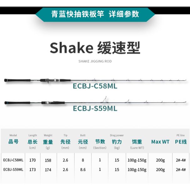 ECOODA Joran One Piece Speed jigging Rod 1.60M/1.63M/1.65M/1.70M/1.73M Line 2-8 Lure 100g-350g Spinning/Overhead JP128