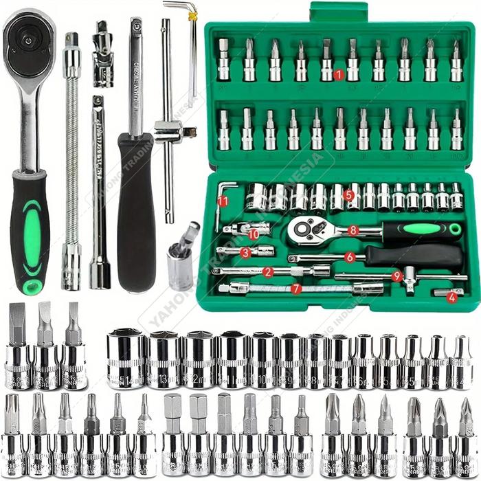 Set Kunci Soket Lengkap 46 PCS 1/4 Inch dengan Kunci Rachet Kunci Hex Bintang Adaptor Bit Kunci Sock Shock WOIRX TOOL