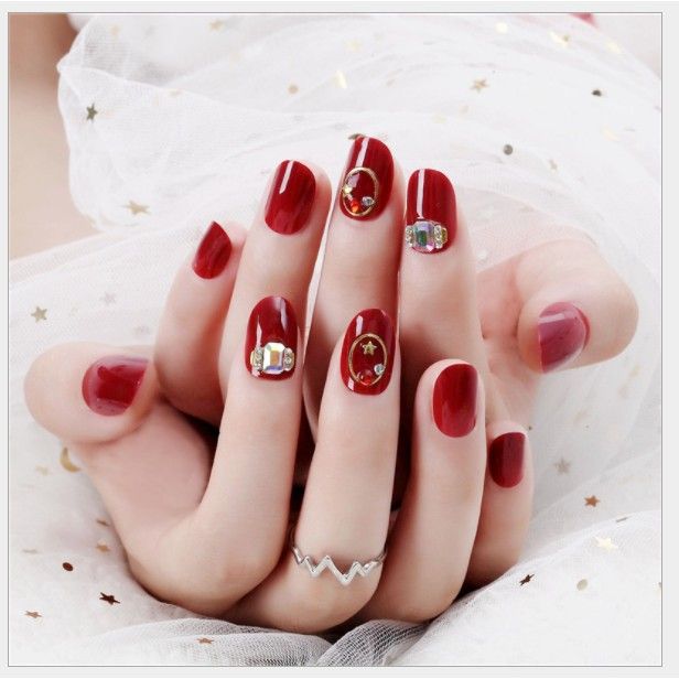 GROSIR Kuku palsu isi 24 pcs metalik dengan hiasan permata + lem anell