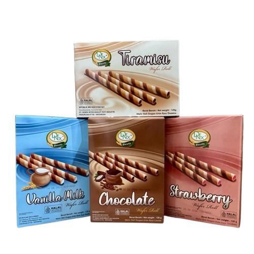 coklat roll pack, straw roll pack, tiramisu roll pack, vanila roll pack