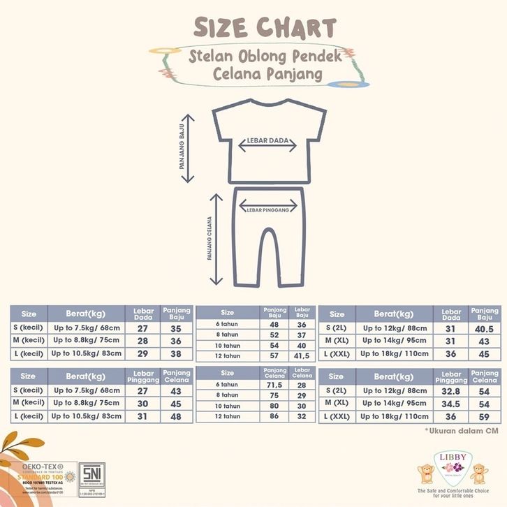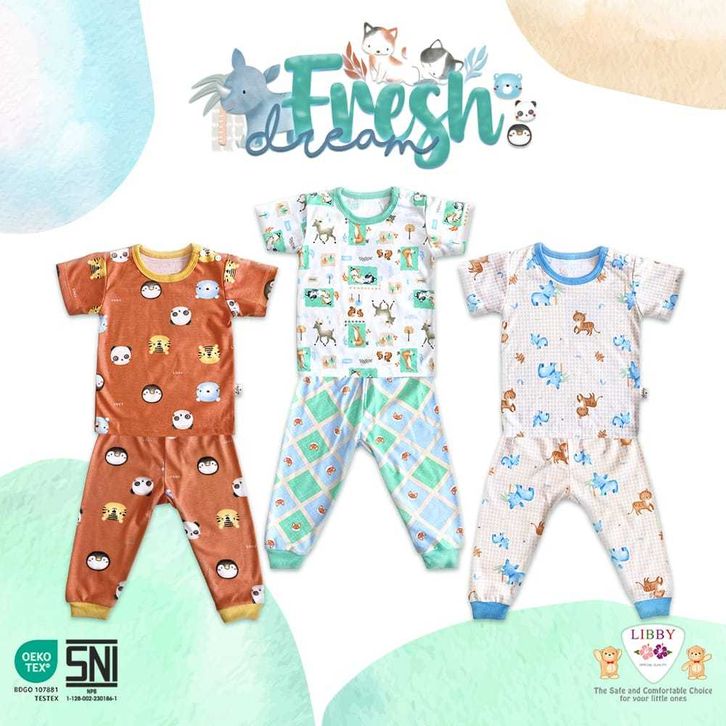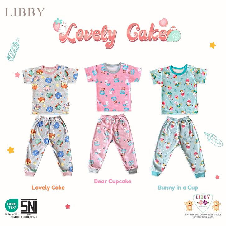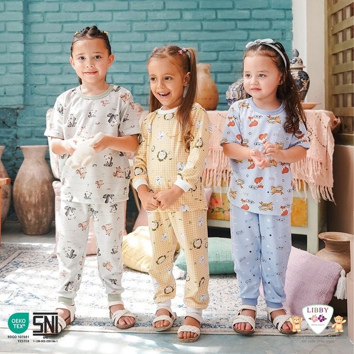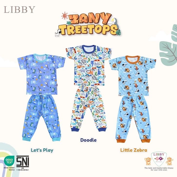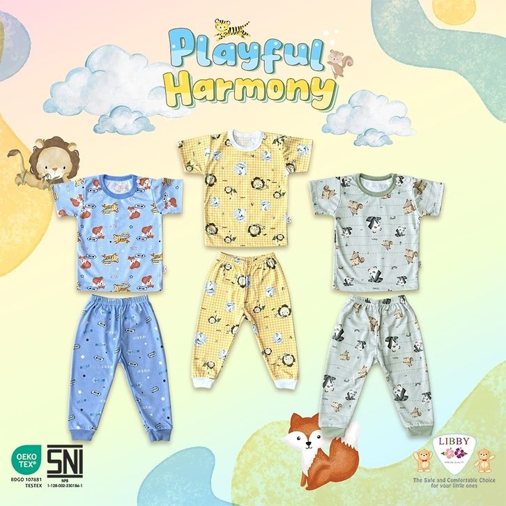 Libby - 3 Setelan Bayi Baju Pendek Celana Panjang S M L Libby Motif Unisex