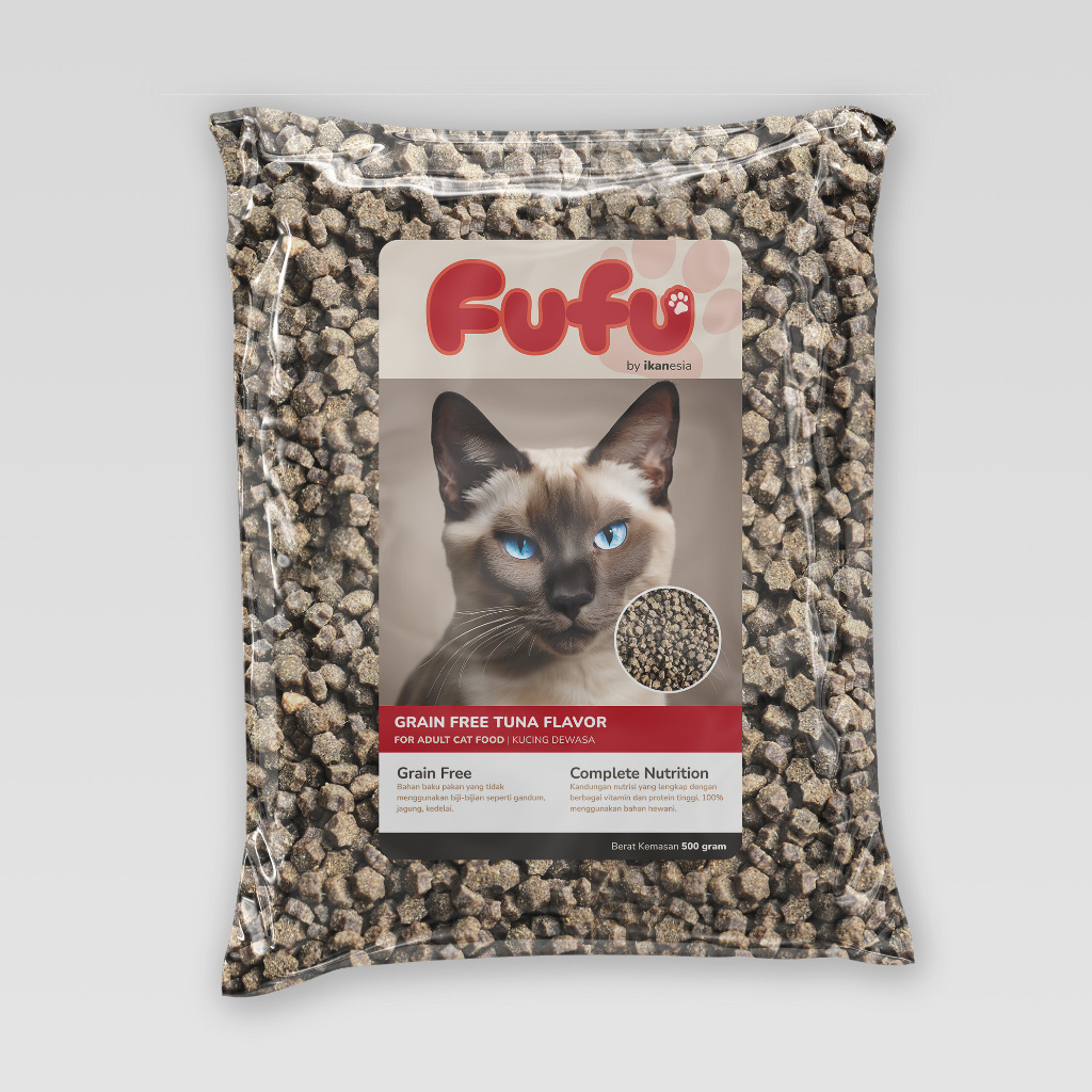 MAKANAN KUCING FUFU GRAIN FREE 500 GR ADULT DAN KITTEN ESIA ASLI LOKAL ESIA
