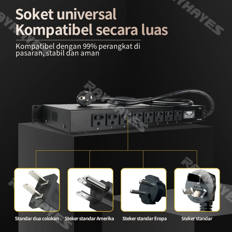 RAYHAYES RS-T12 Pengontrol Urutan Daya Pengkondisi Catu Daya Pemasangan Rak 10 Stop Kontak