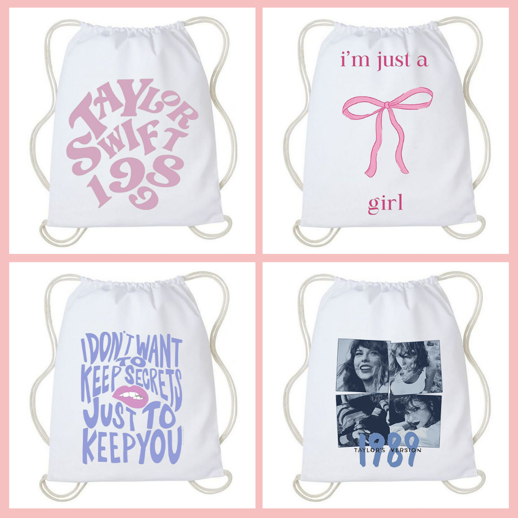 Tas Serut Motif Taylor Swift Stringbag Kanvas Y2k Wanita Drawstring bag Distro Retro