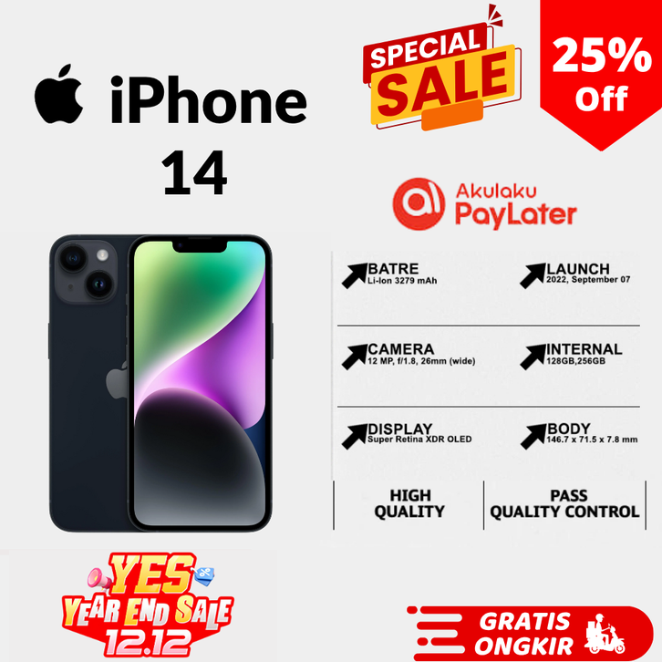 iPhone 14 Second Original Fullset Mulus Like New IP 14 128GB All Operator Normal Good Condition Bergaransi