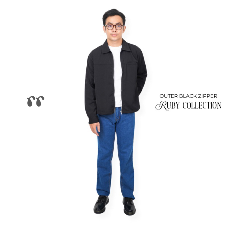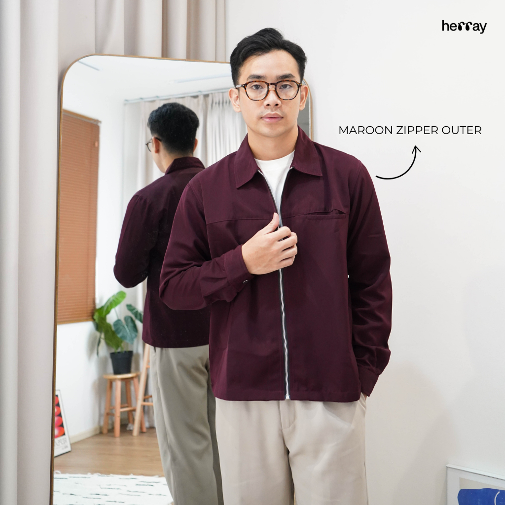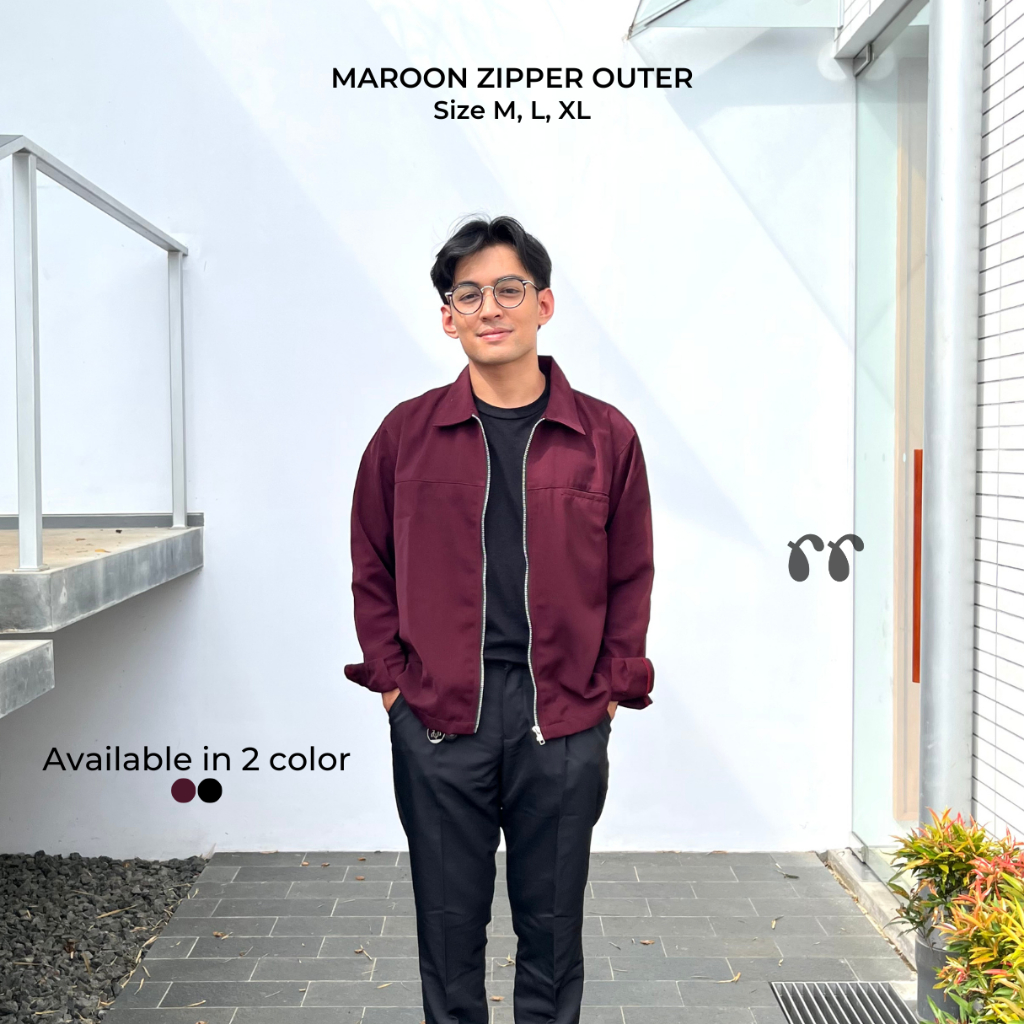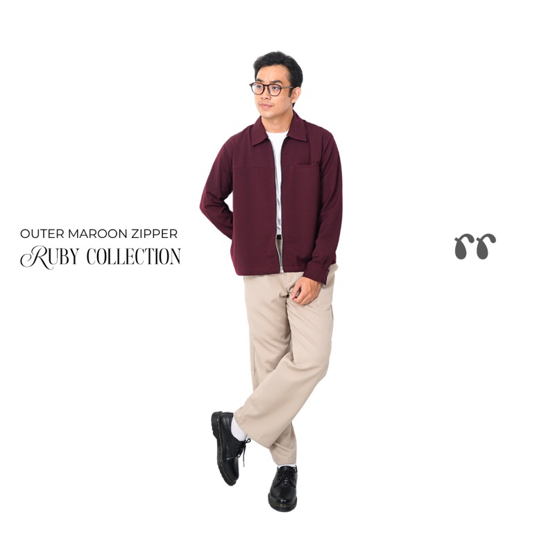 Outer Maroon & Black Zipper Cowok - Ruby Collection