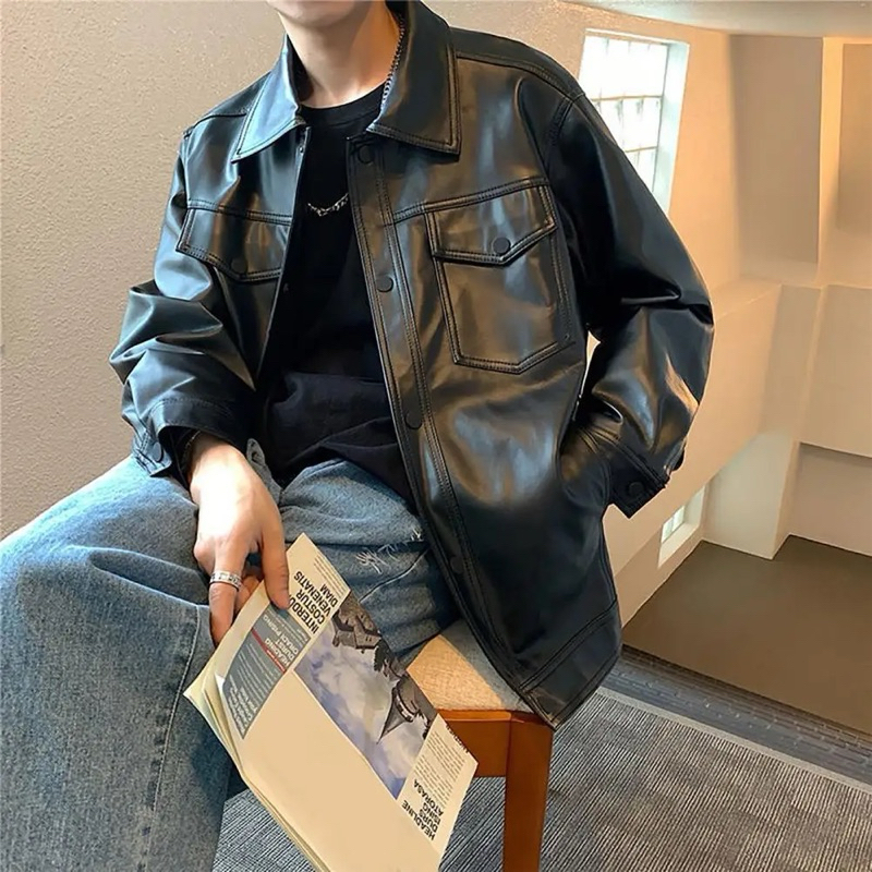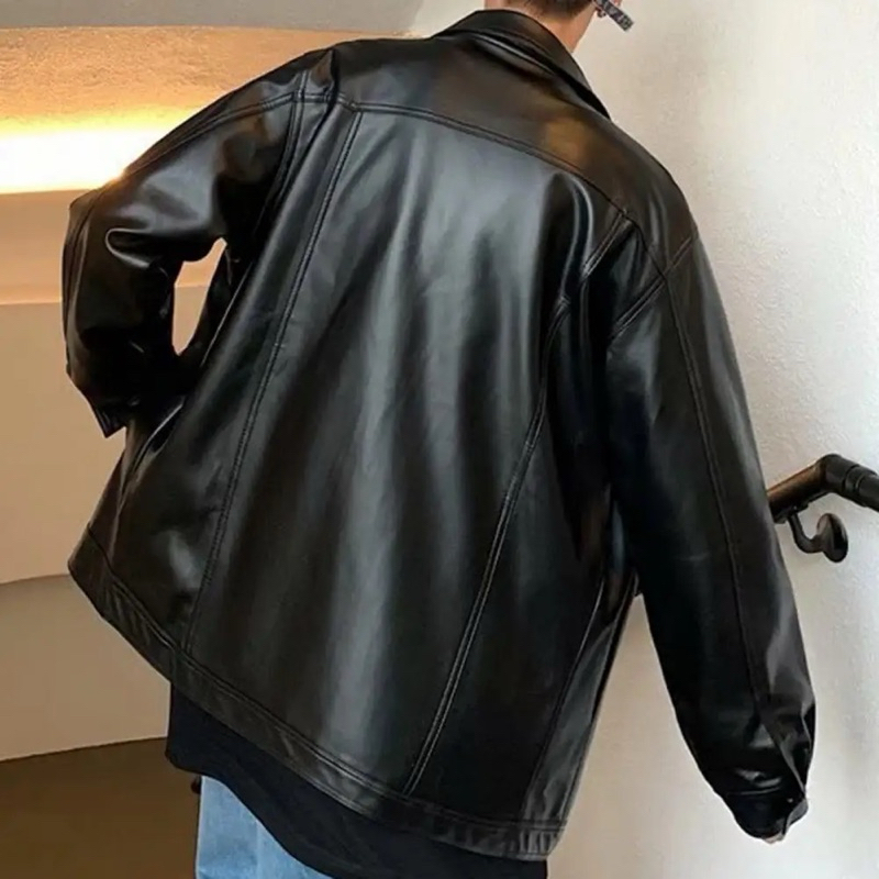 Riseleather.Id - Jaket Kulit Pu Pria Casual Semi Oversize