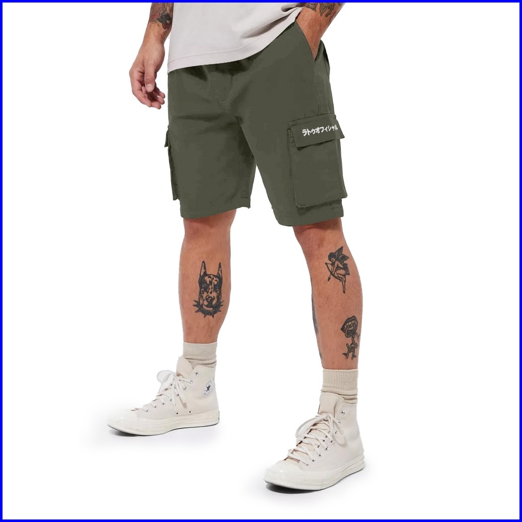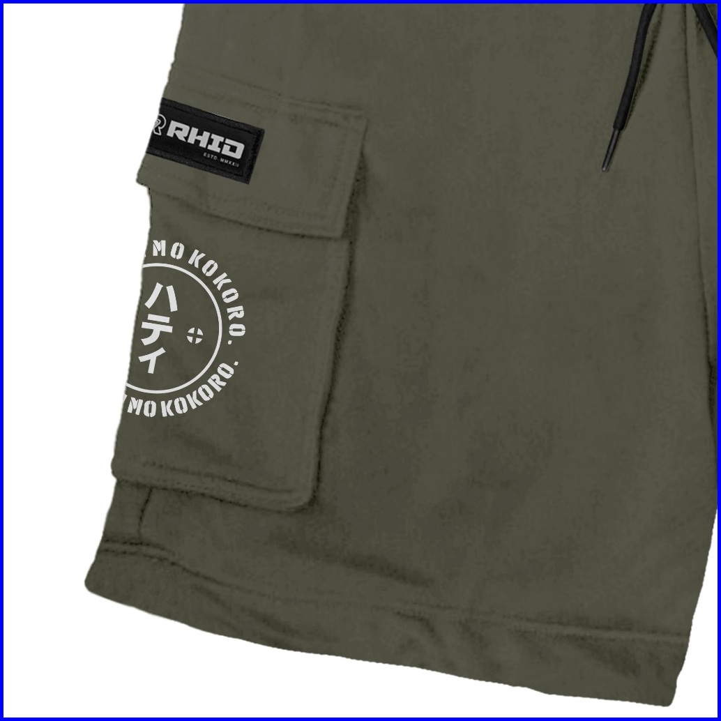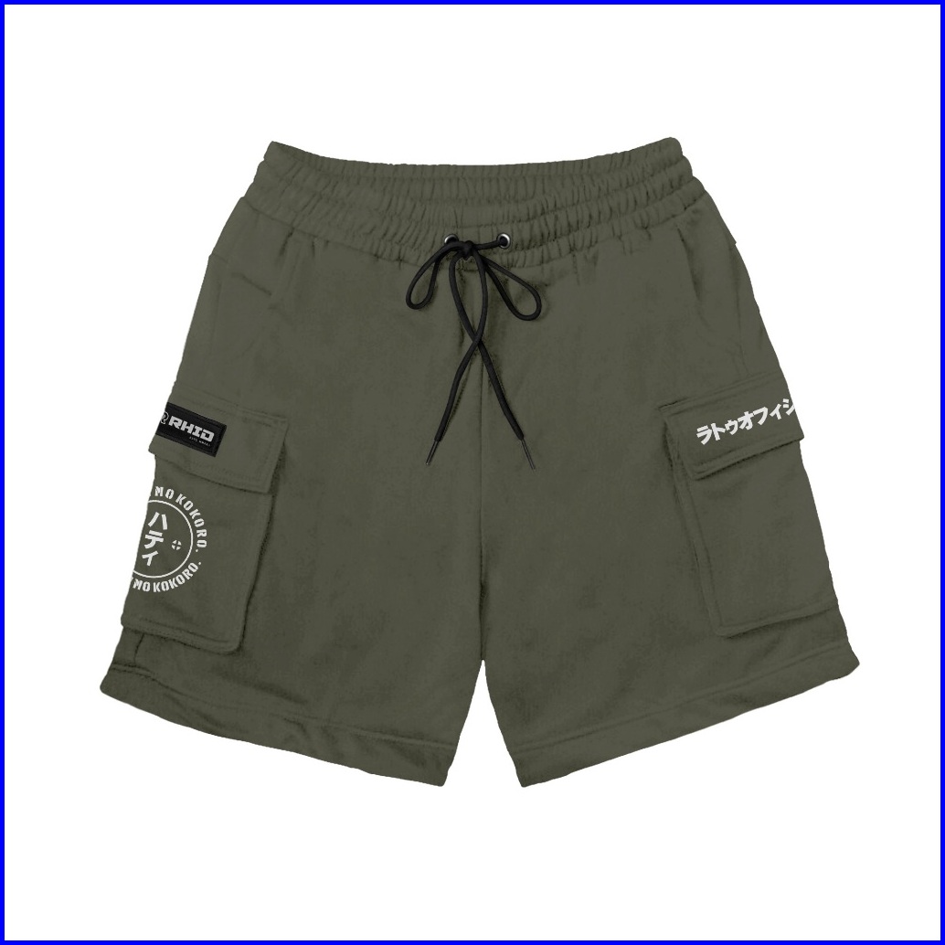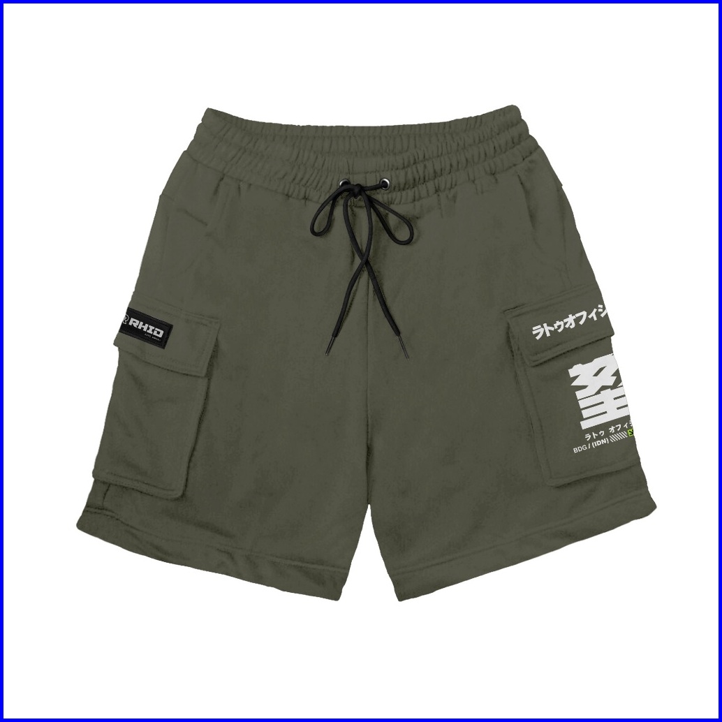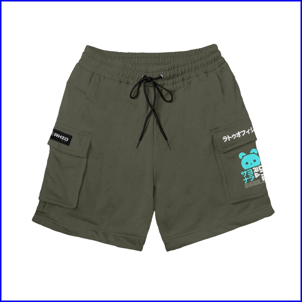 Rhid - Celana Pendek Cargo Pria Army Bahan Fleece