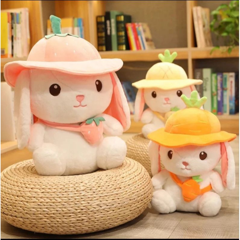 Boneka Rabbit Memakai Topi Lucu Ukuran 40 cm Mainan Anak Bahan Lembut dan Halus