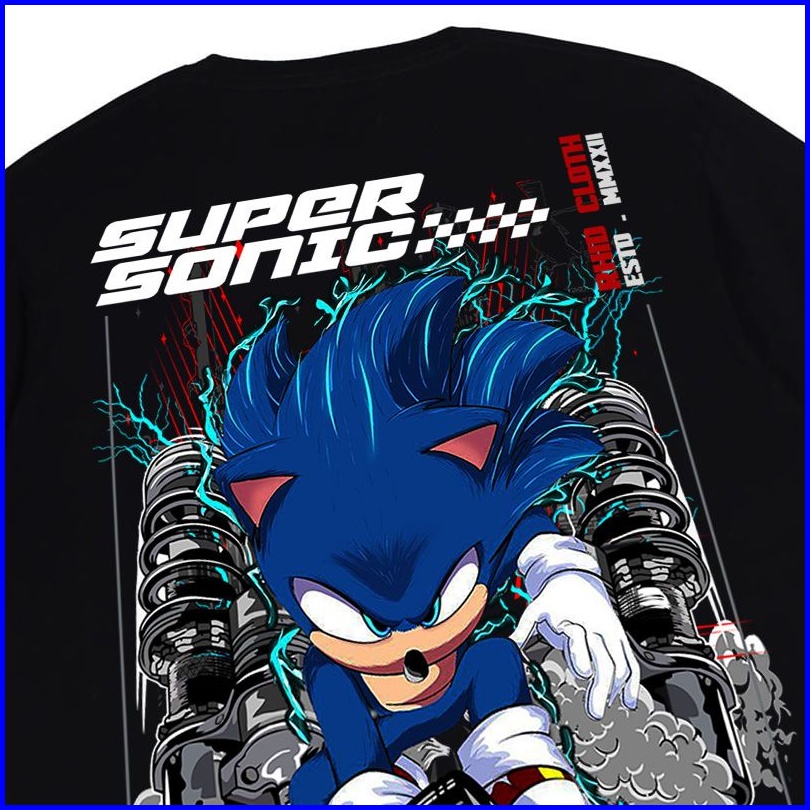 Rhid - Kaos Pria Motif Super Sonic Hitam 24s