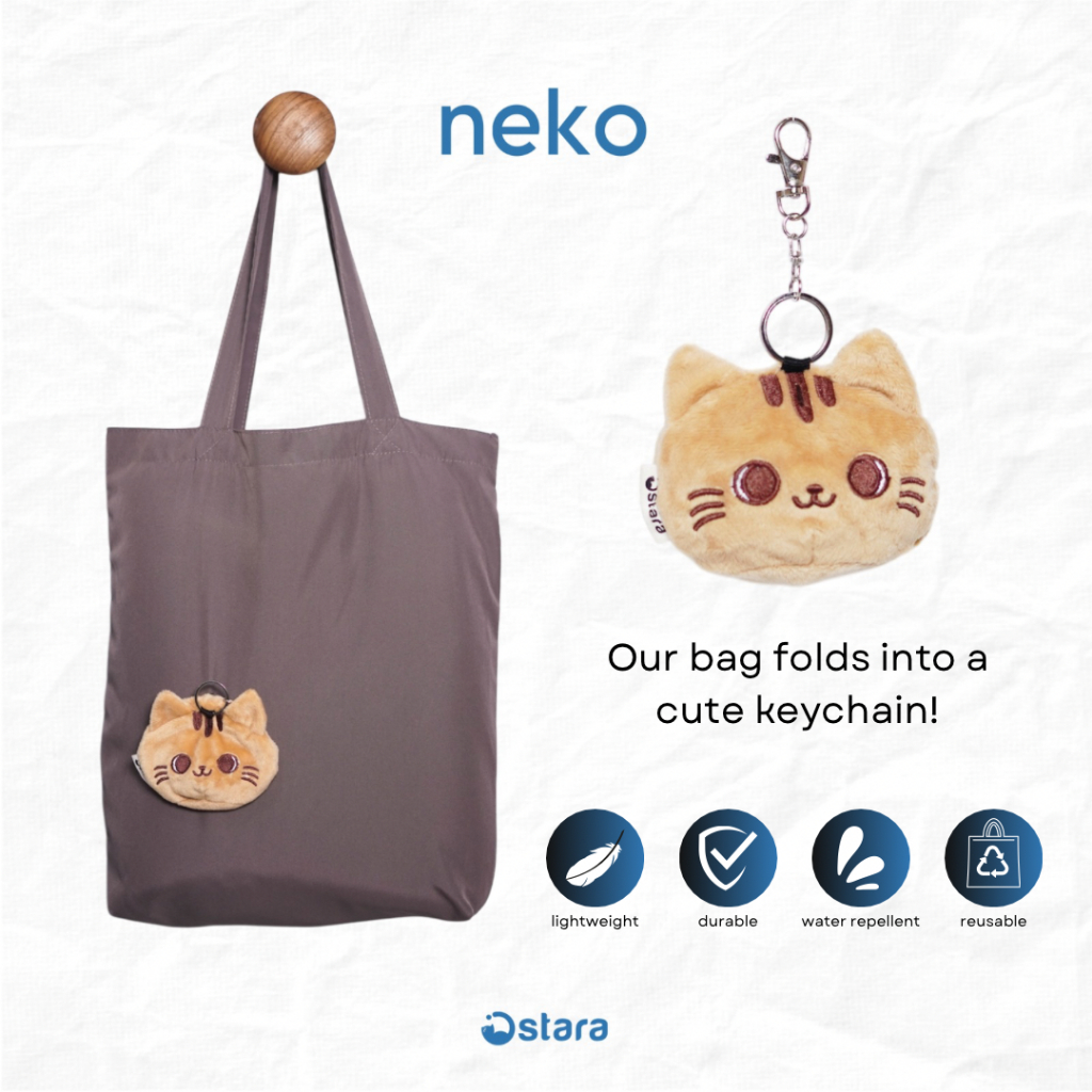 Ostara Tas Belanja Lipat - Neko | Tas Lipat | Tas Travel Lipat | Tote Bag lipat | Gantungan Kunci