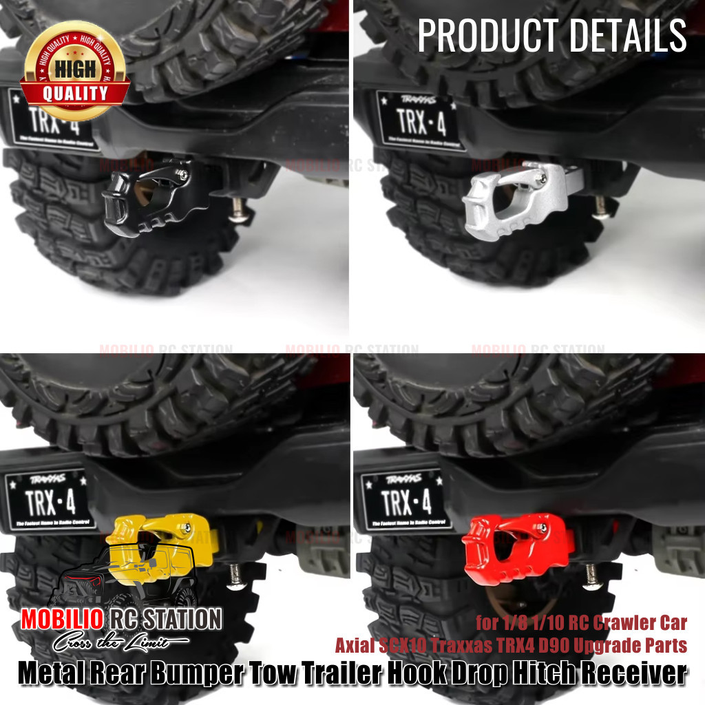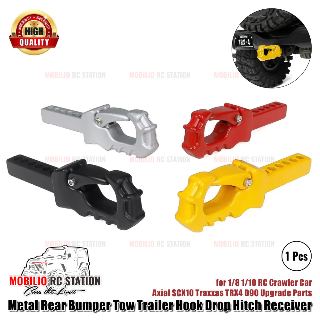 [Star] Metal Rear Bumper Tow Trailer Hook Drop Hitch Receiver for 1/8 1/10 RC Crawler Car Axial SCX10 Traxxas