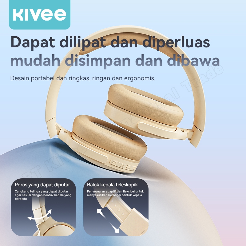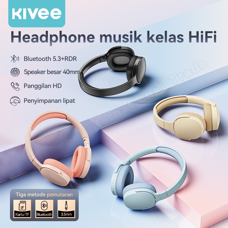 KIVEE Headphone Wireless Bluetooth 5.3 Headset Music Gaming HIFI 9D HIFI Black Original