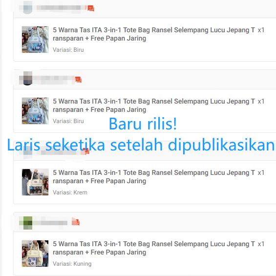 5 Warna Tas ITA 3-in-1 Tote Bag Ransel Selempang Lucu Jepang Transparan + Free Papan Jaring