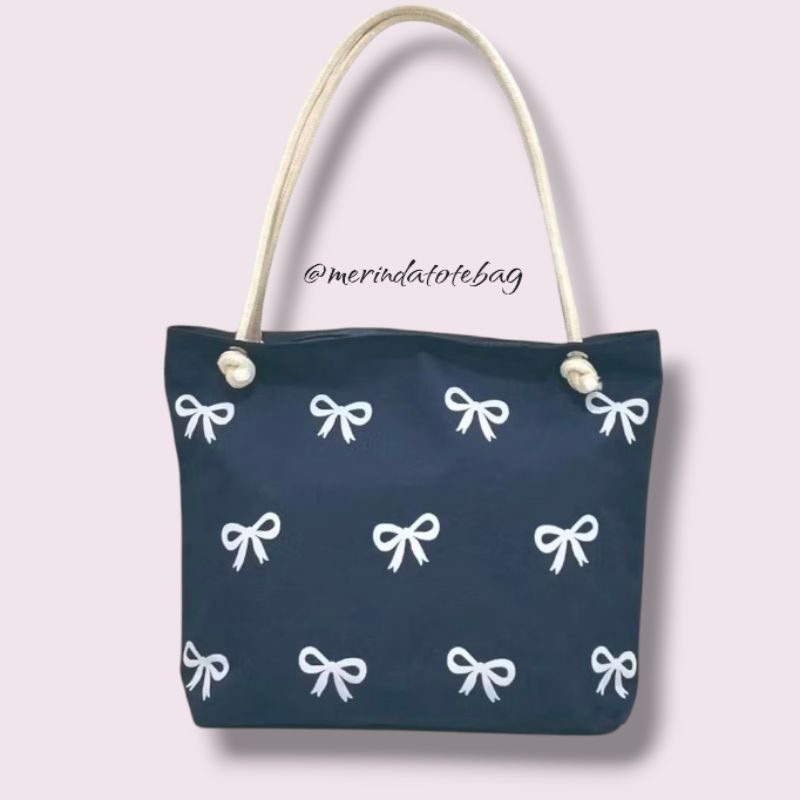 MTS - Tas Wanita Totebag Bahan Kanvas Tali Sumbu Resleting Motif Terbaru