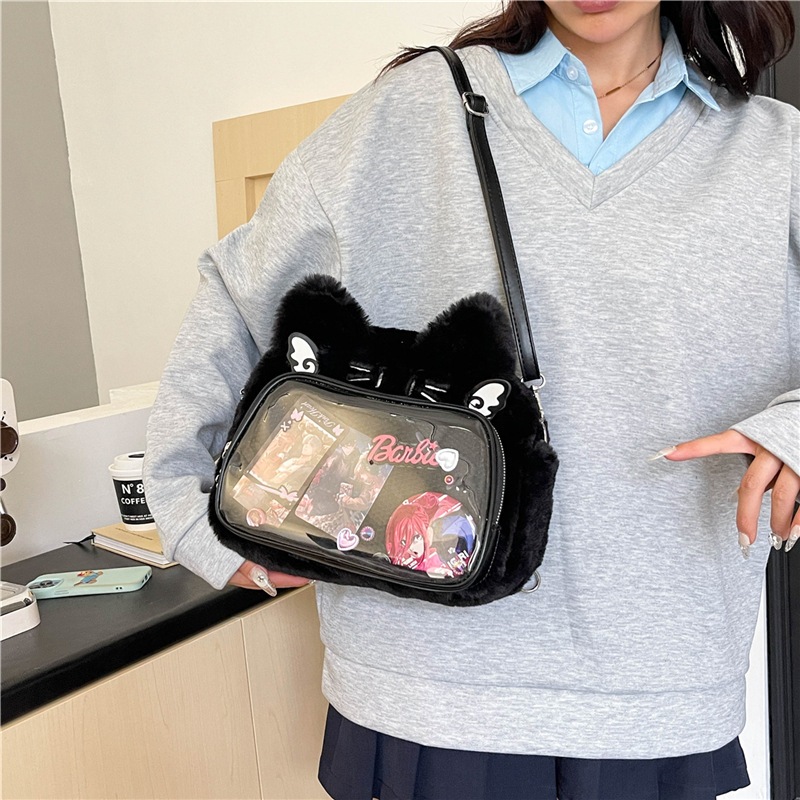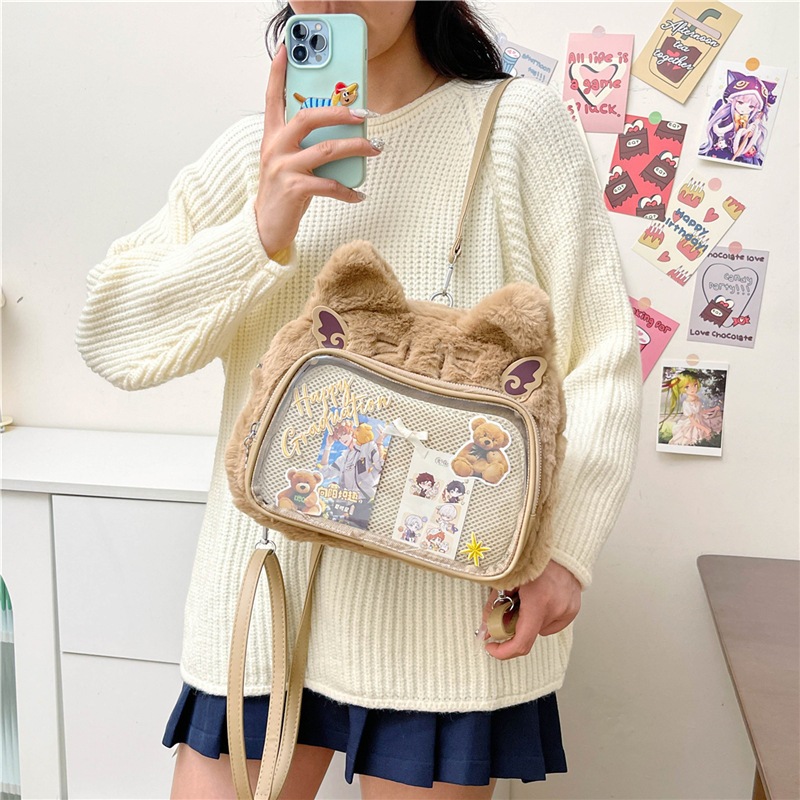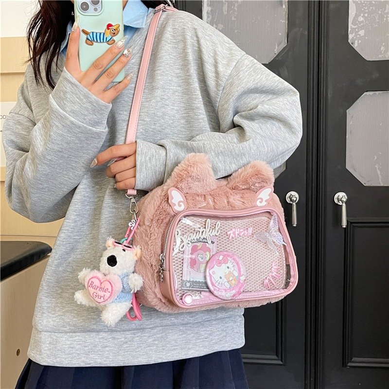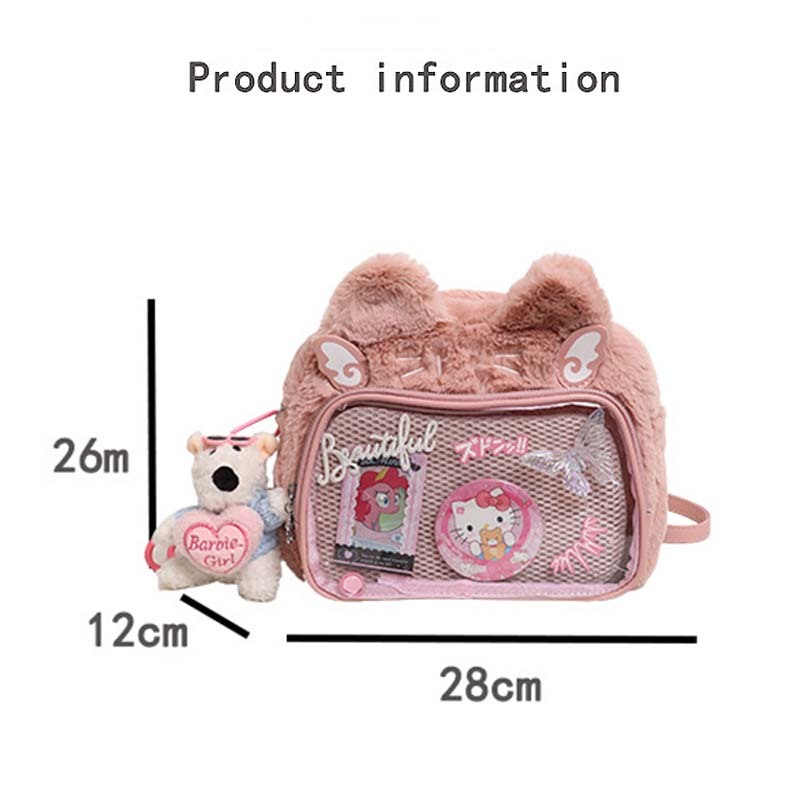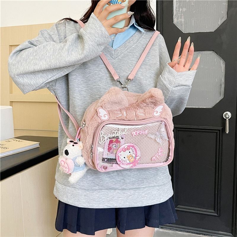 Tas Ransel Wanita Kecil Tas Gendong Cewek Bulu Shoulder ITA Bag Tas Ransel Telinga Kucing Lucu Tas Tote Satu Bahu