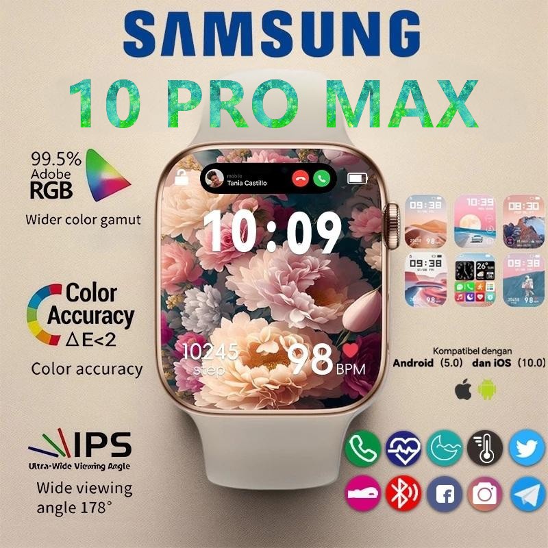 Samsung SmartWatch 10 Pro Max Wanita Tahan Air Jam Pintar Bluetooth Olahraga Smart Watch Gps Peta Nfc Smartwatch Hd