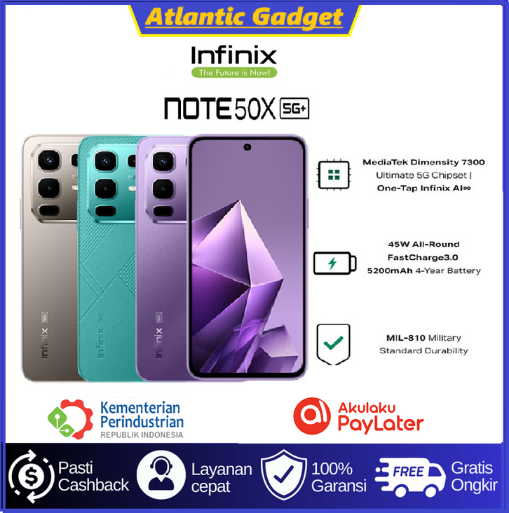 (BEBAS DP) Infinix Note 50X 5G RAM 8/256GB | MediaTek Dimensity 7300 Ultimate | One Tap Infinix AI | Baterai 5200mAh 45W