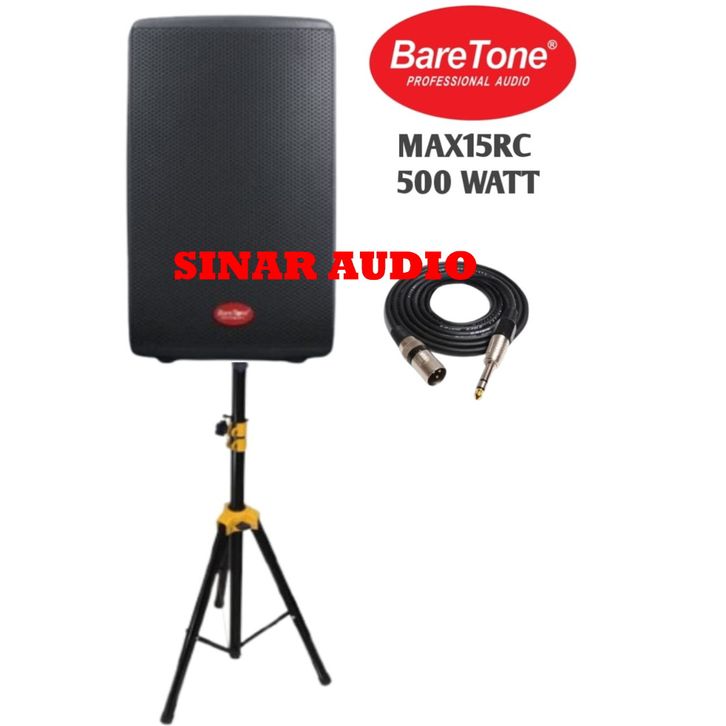 Paket Speaker Aktif BareTone MAX15RC Original 15 Inch 500 Watt Komplit Mixer + Mic kabel + Stand + kabel