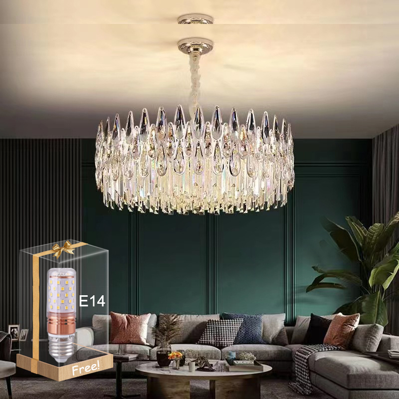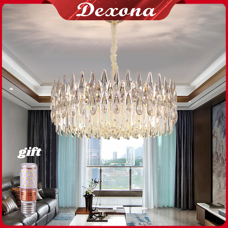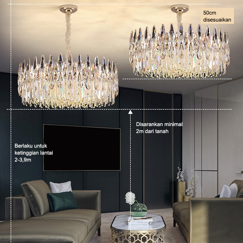 Lampu Gantung Kristal Chandelier Gold 60/40cm Ruang Tamu 3 warna Mewah Gaya Lampu Gantung Minimalis Hias Nordik Modern