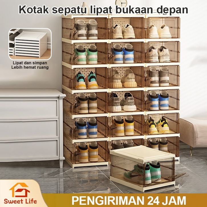 Kotak Sepatu Lipat Rak Sepatu Lipat 6 Tingkat Serbaguna Penyimpanan Vertikal Portable Rak Sepatu Susun Tertutup Lemari S
