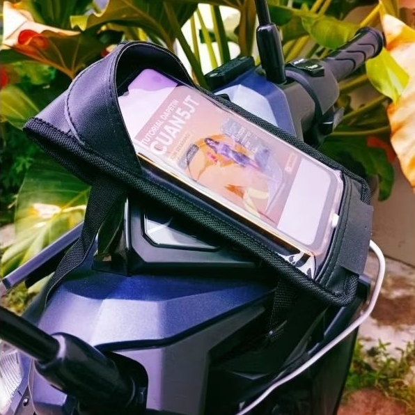 Holder HP motor ada lubang cas dan Plus Kanopi Bahan kulit sintetis anti air