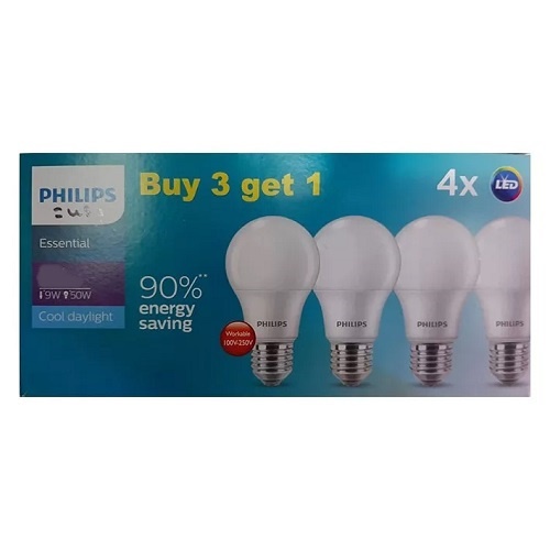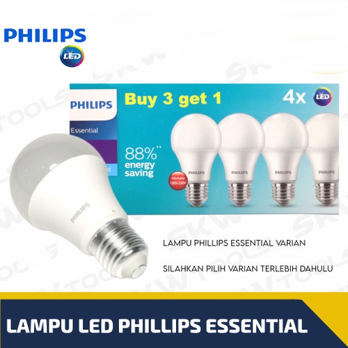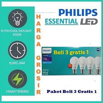 PAKET BELI 3 GRATIS 1 - PHILIPS BOLA LAMPU LED ESSENTIAL MULTIPACK - WARNA PUTIH