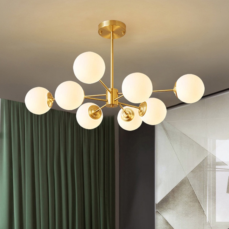 Golden LED Bola berbilang Lampu Gantung / Lampu Gantung 8 Bohlam / Nordic Chandelier Eropa Modern / Lampu Gantung Nordic
